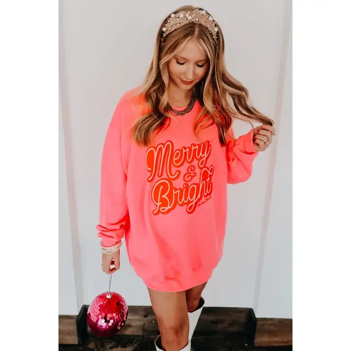 Merry and Bright Hot Pink Sweatshirt
